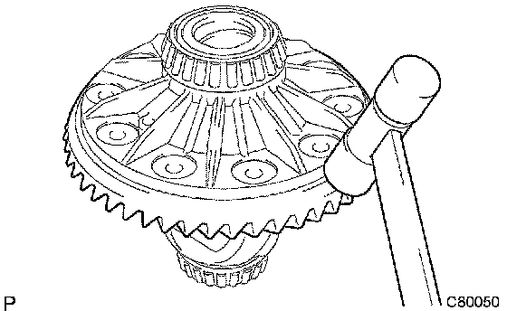 c. Using a plastic hammer, tap on the ring gear to separate it from the differential case.