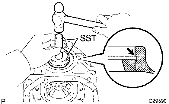 b. Using SST and a hammer, install the outer race on the drive pinion side.