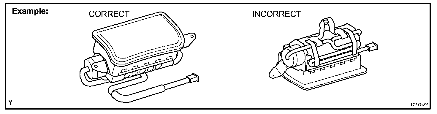 1. Always store a removed or new instrument panel lower airbag assembly with the airbag inflating direction facing upward.