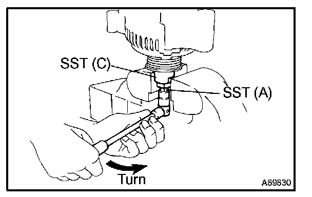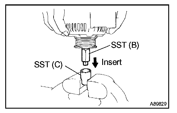 e. Insert SST (B) into SST (C), and attach the pulley nut to SST (C).