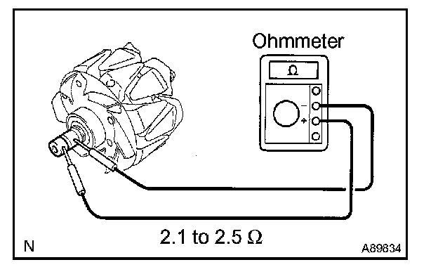1. Using an ohmmeter, measure the resistance between the slip rings.