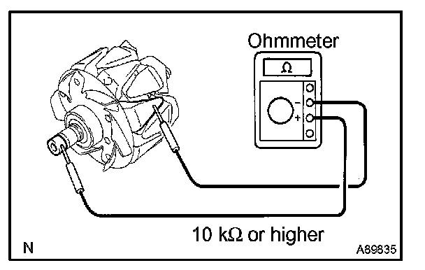 1. Using an ohmmeter, measure the resistance between the slip ring and the rotor core.