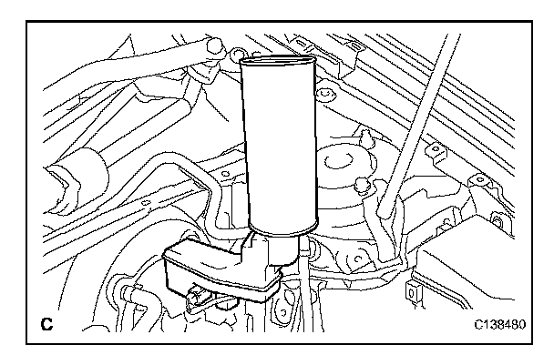 ^ To avoid brake fluid from adhering, cover the painted surface with a shop rag or piece of cloth.