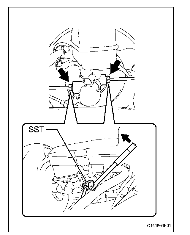 (a) Using SST, disconnect the 2 brake lines from the master cylinder.