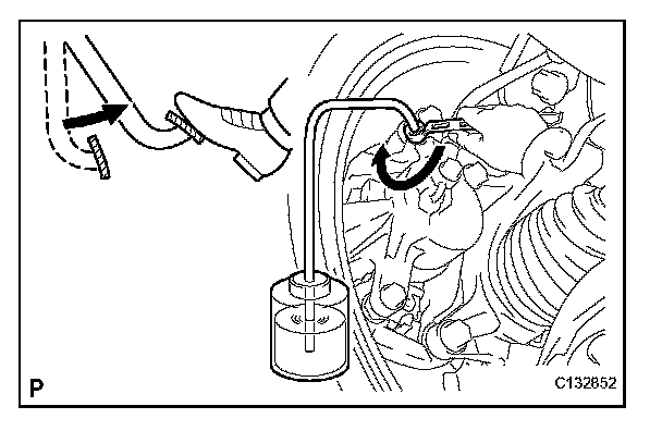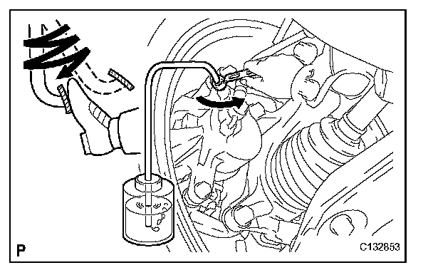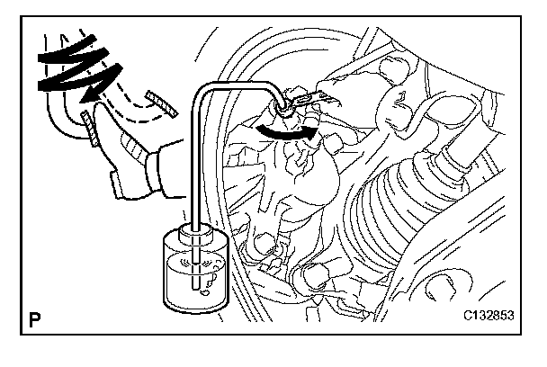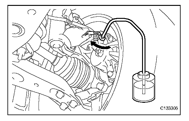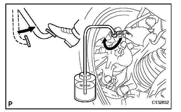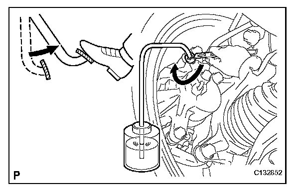 ^ During this procedure, the pedal seems heavy, but completely depress it so that the brake fluid comes out from the bleeder plug.