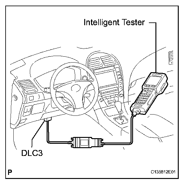 (b) Connect the intelligent tester to the DLC3, then turn the engine switch on (IG).