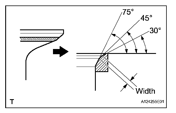 (a) Using a 45° cutter, resurface the valve seat so that the valve seat width is more than the specification.