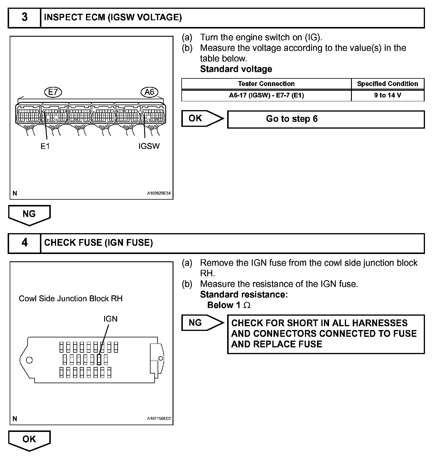 When the engine switch is turned on (IG), the battery voltage is applied to terminal IGSW of the ECM. The ECM MREL output signal causes a current to flow to the coil, closing the contacts of the EFI MAIN relay and supplying power to terminal +B of the ECM.