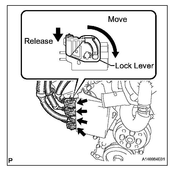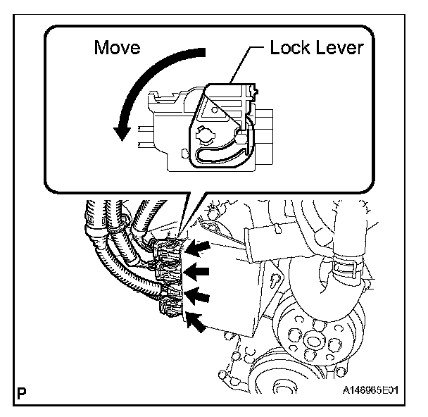 1. Move the lock lever in the direction indicated by the arrow to release the connector lock.
