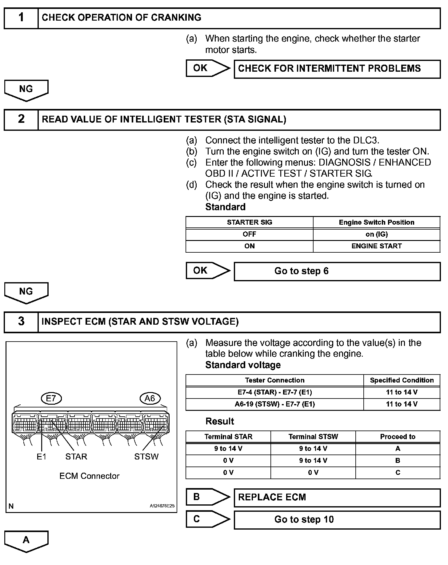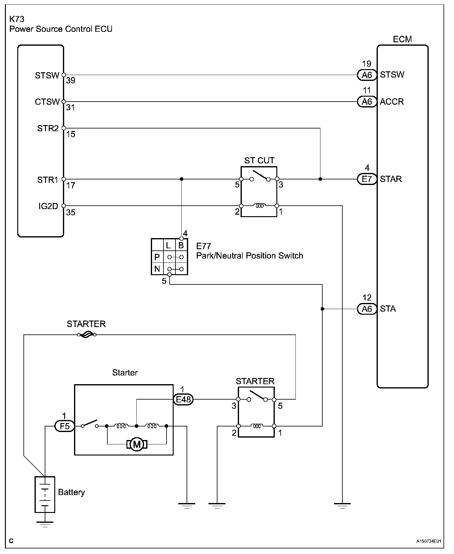 When the engine is cranking, the starter operation signal is sent to the ECM's STA terminal.