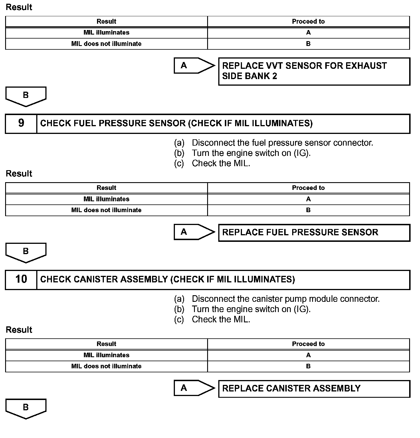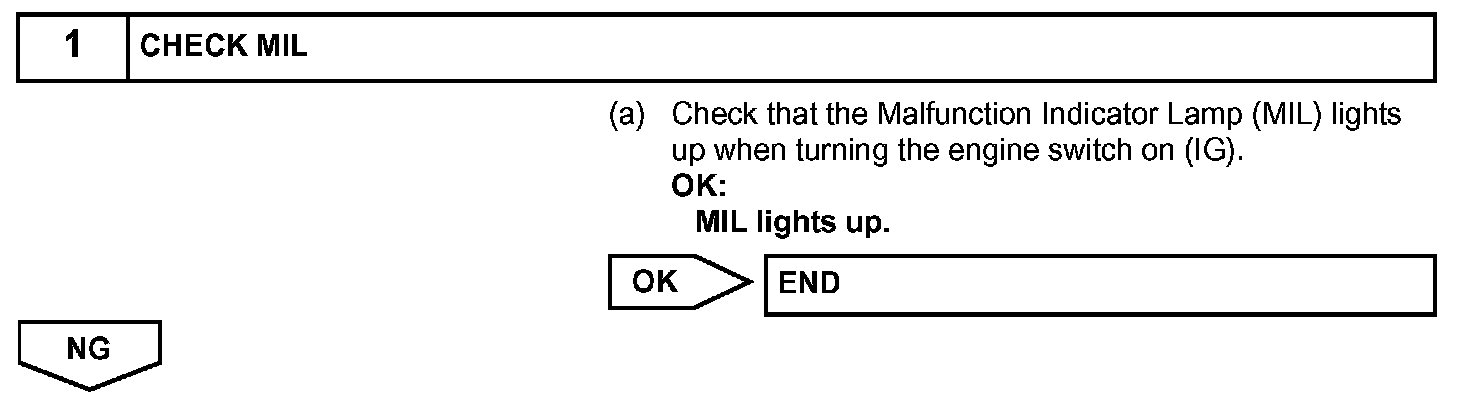 HINT: Under normal conditions, the MIL is illuminated for several seconds when the engine switch is first turned on (IG). The MIL goes off when the engine is started.