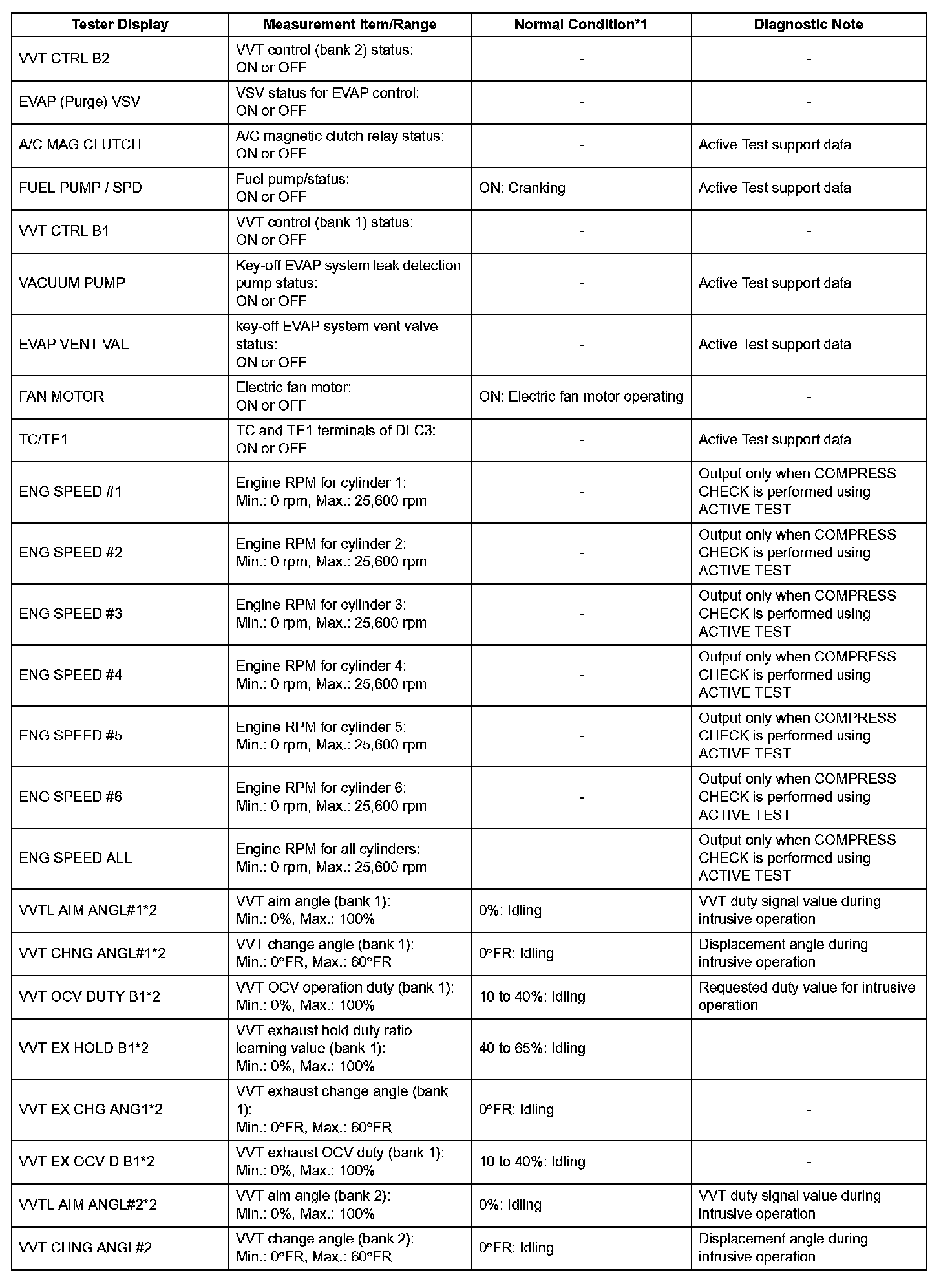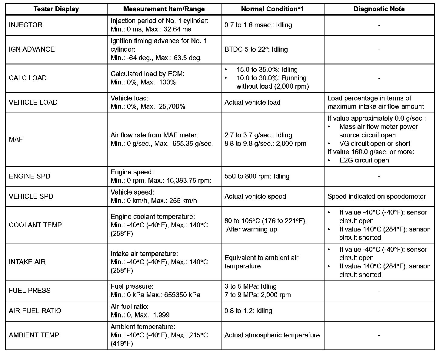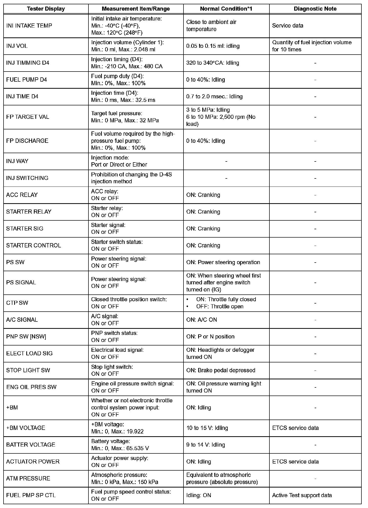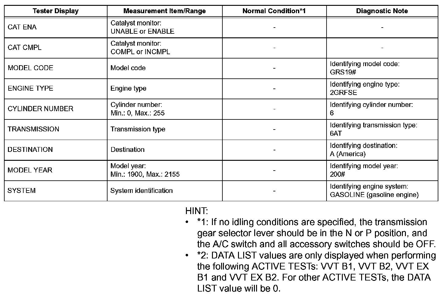 DATA LISTHINT: By reading the DATA LIST displayed on the intelligent tester, you can check values, including those of the switches, sensors and actuators, without removing any parts. Reading the DATA LIST as the first step of troubleshooting is one method of shortening diagnostic time.