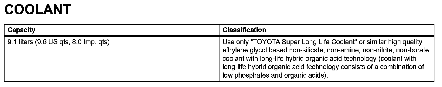 Cooling - Coolant: