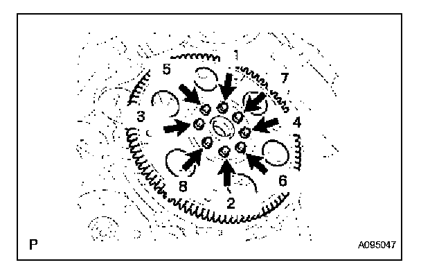 Tighten the 8 bolts uniformly in several steps in the order shown in the illustration.