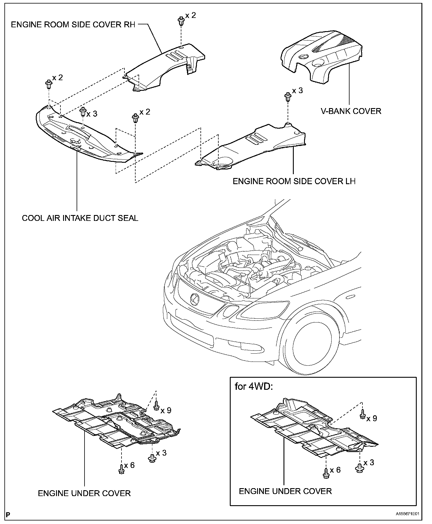 3. REMOVE ENGINE UNDER COVER (for 4WD)