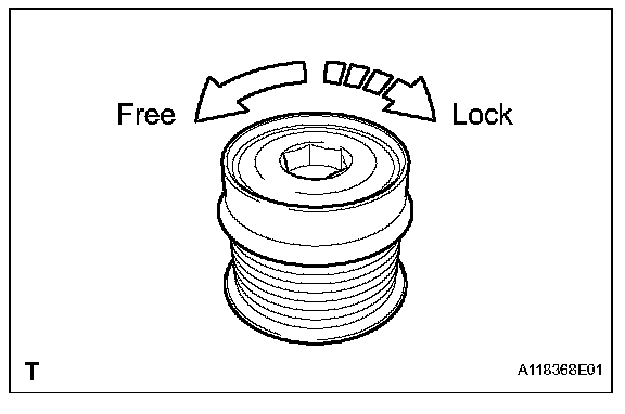 a. Hold the center of the pulley, and confirm that the outer ring turns counterclockwise and does not turn clockwise.