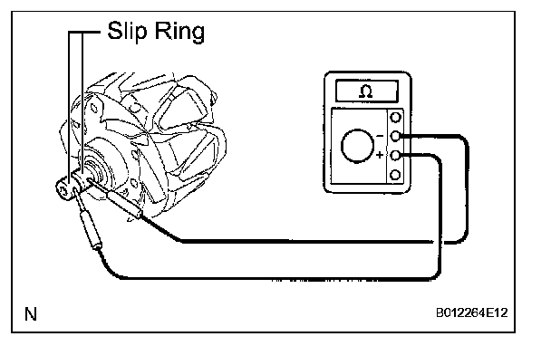 1. Using an ohmmeter, measure the resistance between the slip ring and rotor.