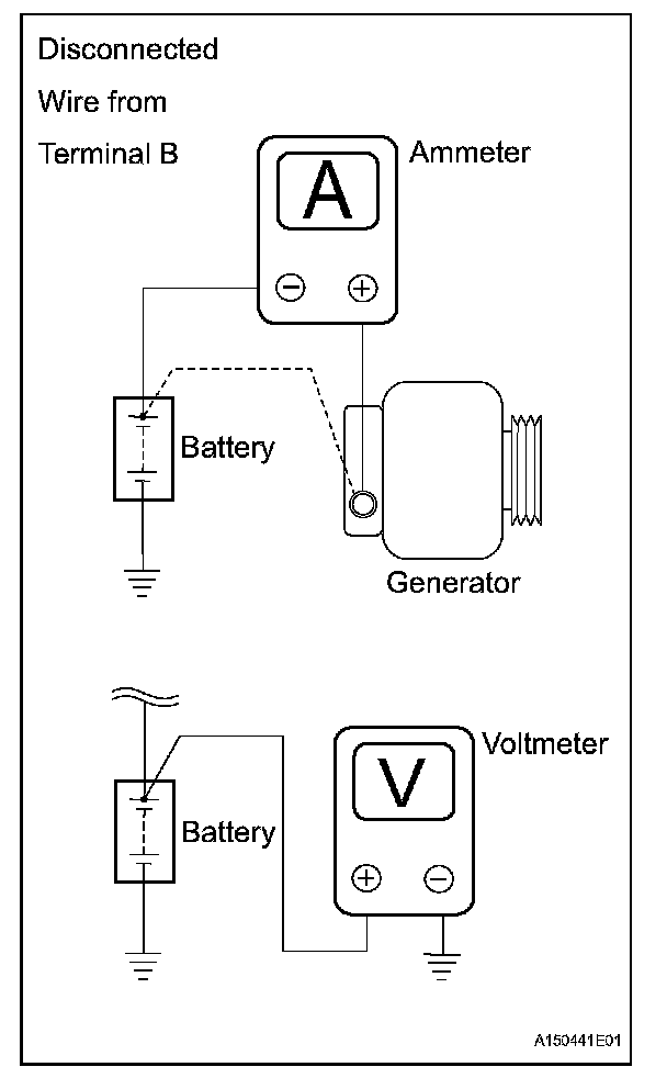 1. Disconnect the wire from terminal B of the generator and connect it to the negative (-) lead of the ammeter.