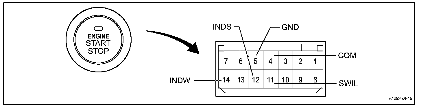 b. Apply battery voltage between the terminals of the switch, and check the illumination condition of the switch.