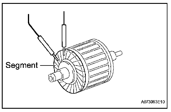 a. Using an ohmmeter, measure the resistance between any 2 segments of the commutator.