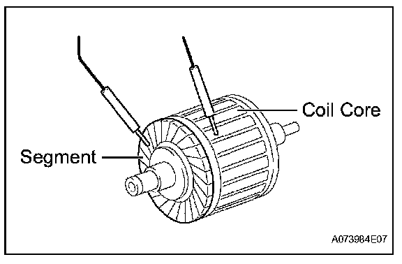 b. Measure the resistance between each segment of the commutator and armature coil core.