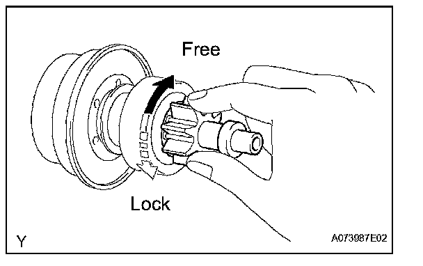 b. Rotate the pinion gear clockwise, and check that it turns freely. Try to rotate the pinion gear counterclockwise and check that it locks.