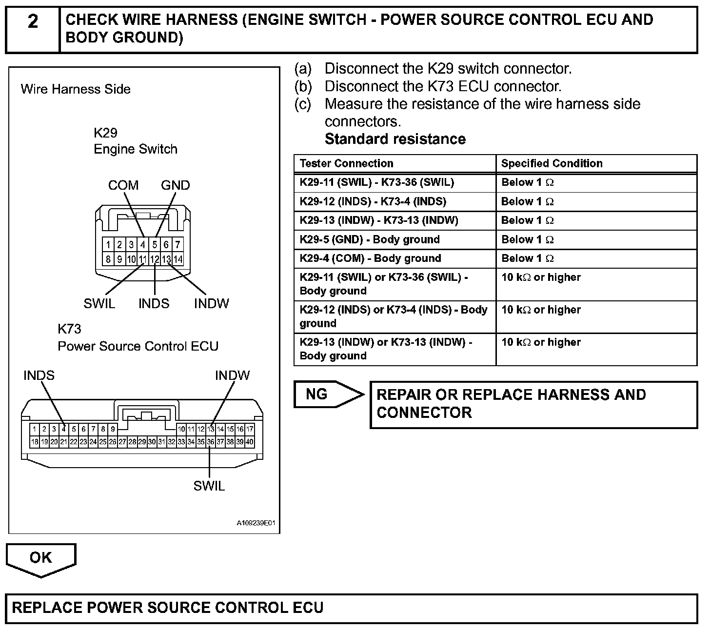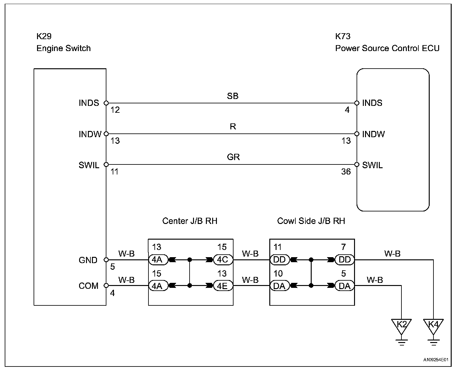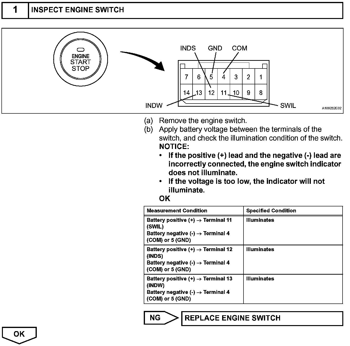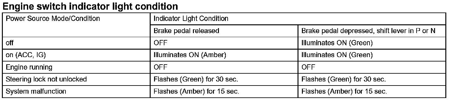 Engine start conditions or system malfunctions can be checked by the status of the engine switch indicator light.