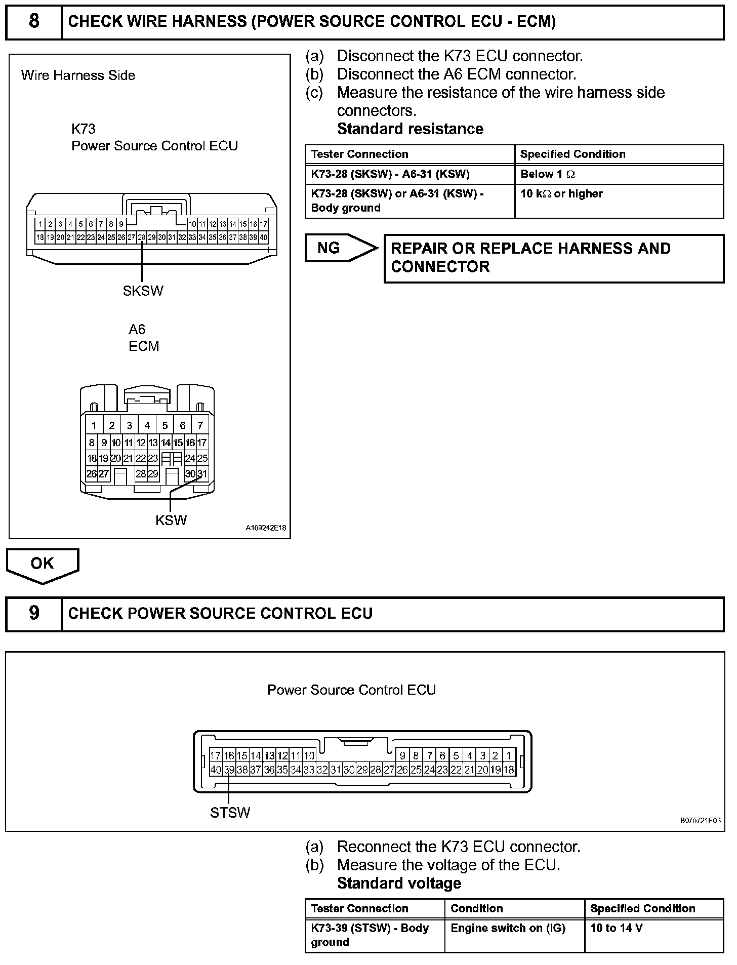 g. The ECM and power source control ECU activate the ST relay.