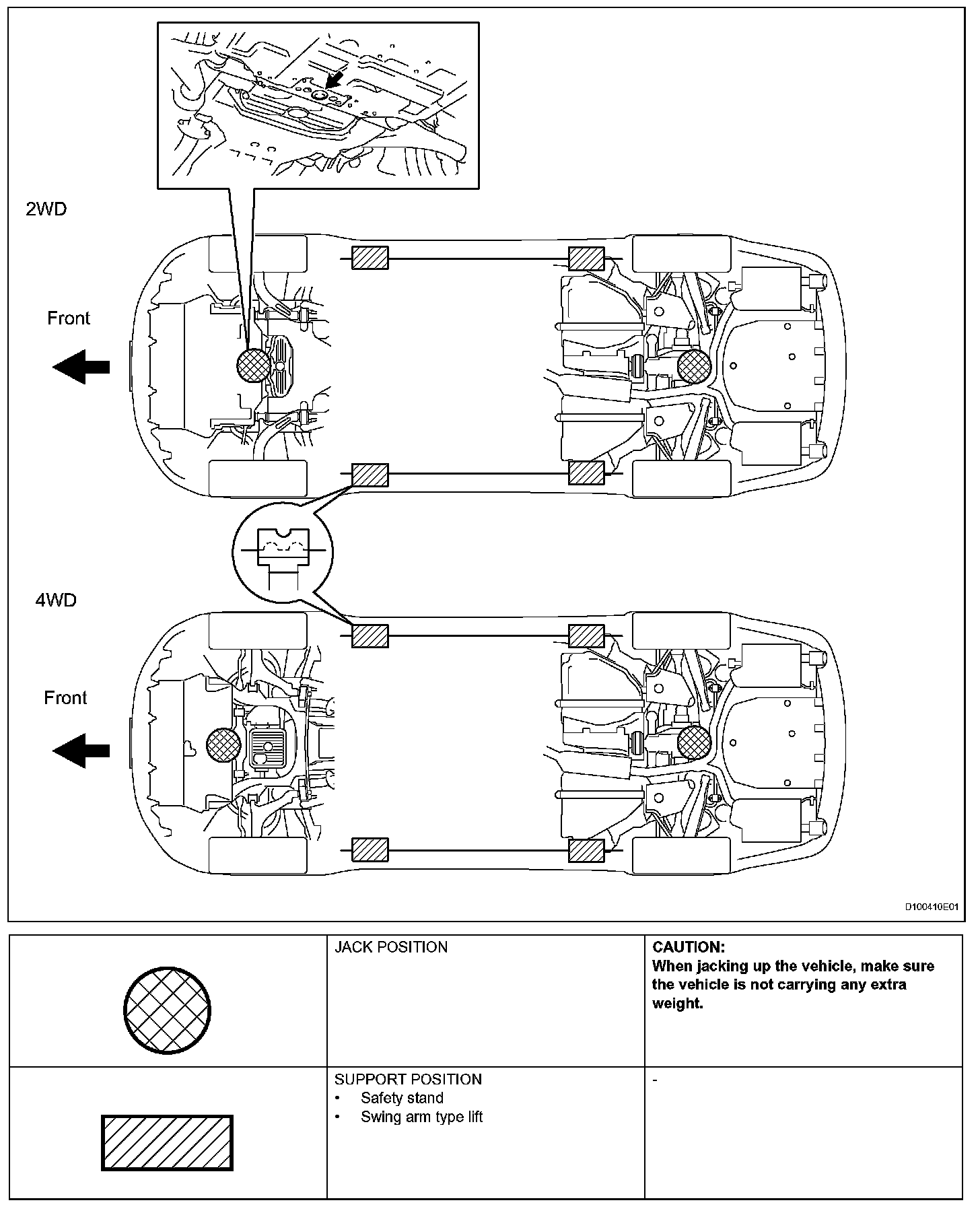 VEHICLE LIFT AND SUPPORT LOCATIONS1. NOTICE ABOUT VEHICLE CONDITION WHEN JACKING UP VEHICLE