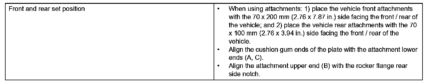 c. Set the jack and rigid racks to the specified locations of the vehicle accurately.