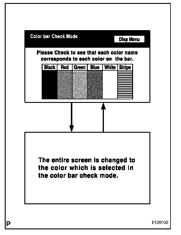 - Touching the display will return to the "Color Bar Check" screen.