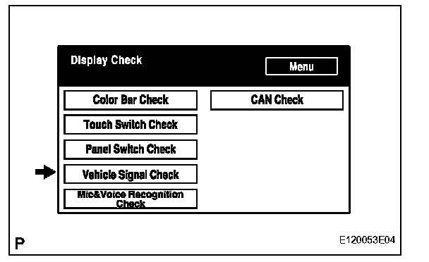 a. Select "Vehicle Signal Check" from the "Display Check" screen.