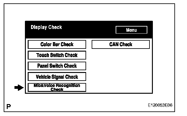 a. Select "Mic & Voice Recognition Check" on the "Display Check" screen to display "MICROPHONE & VOICE RECOGNITION CHECK" screen.