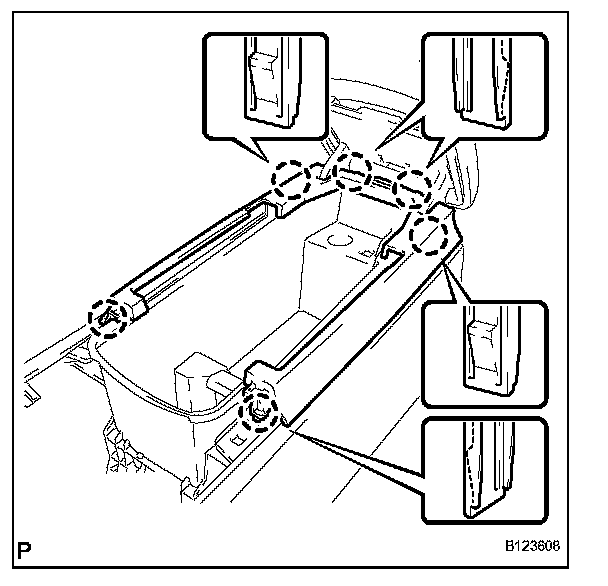 a. Engage the 6 claws and install the front upper console panel garnish.
