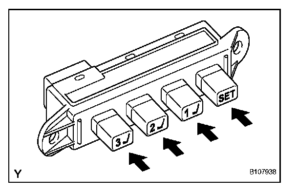 h. Check that the buzzer sounds for 0.5 seconds and the seat position is memorized when the M3 switch is pressed while the SET switch is being pressed.