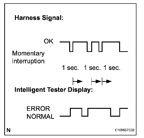 - The ERROR display on the intelligent tester remains on for 1 second after the harness signal changes from momentary interruption (open circuit) to normal condition.