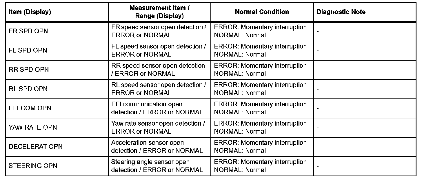 CHECK FOR INTERMITTENT PROBLEMSHINT: A momentary interruption (open circuit) in the connectors and/or wire harness between the sensors and ECUs can be detected in the ECU data list function of the intelligent tester.