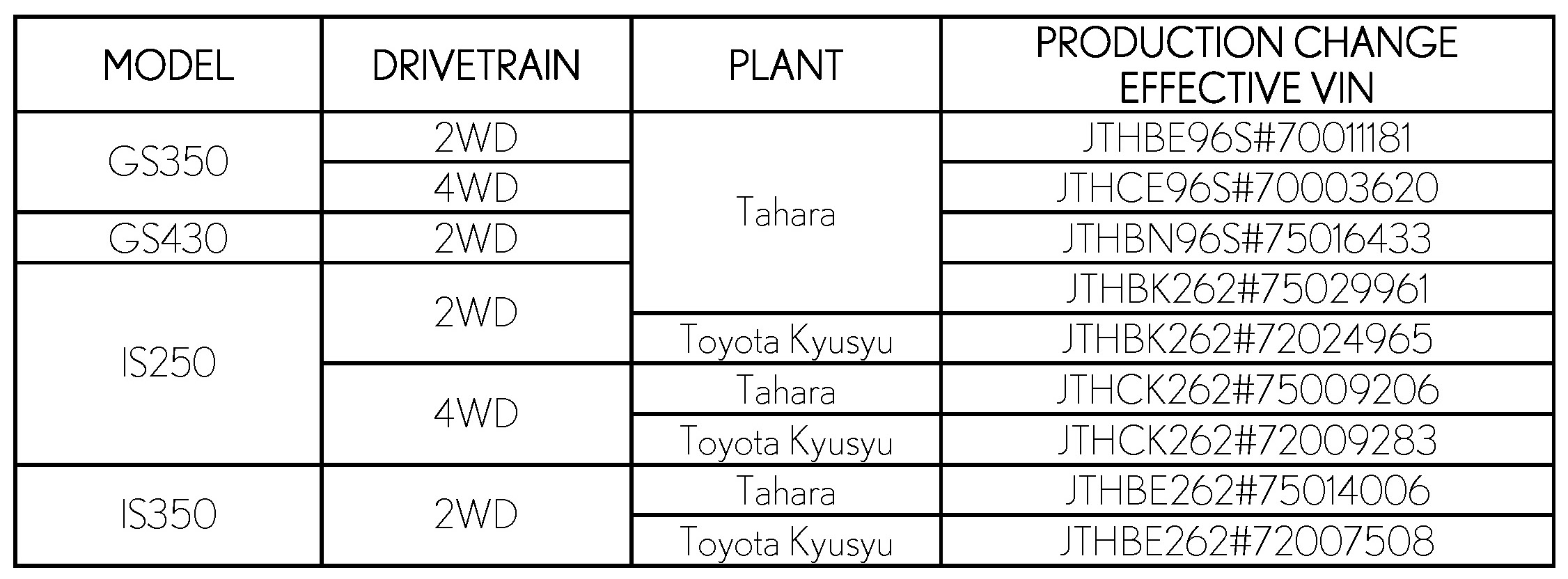 '06 GS 300, '07 GS 350, '06- '07 GS 430 & IS 250/350