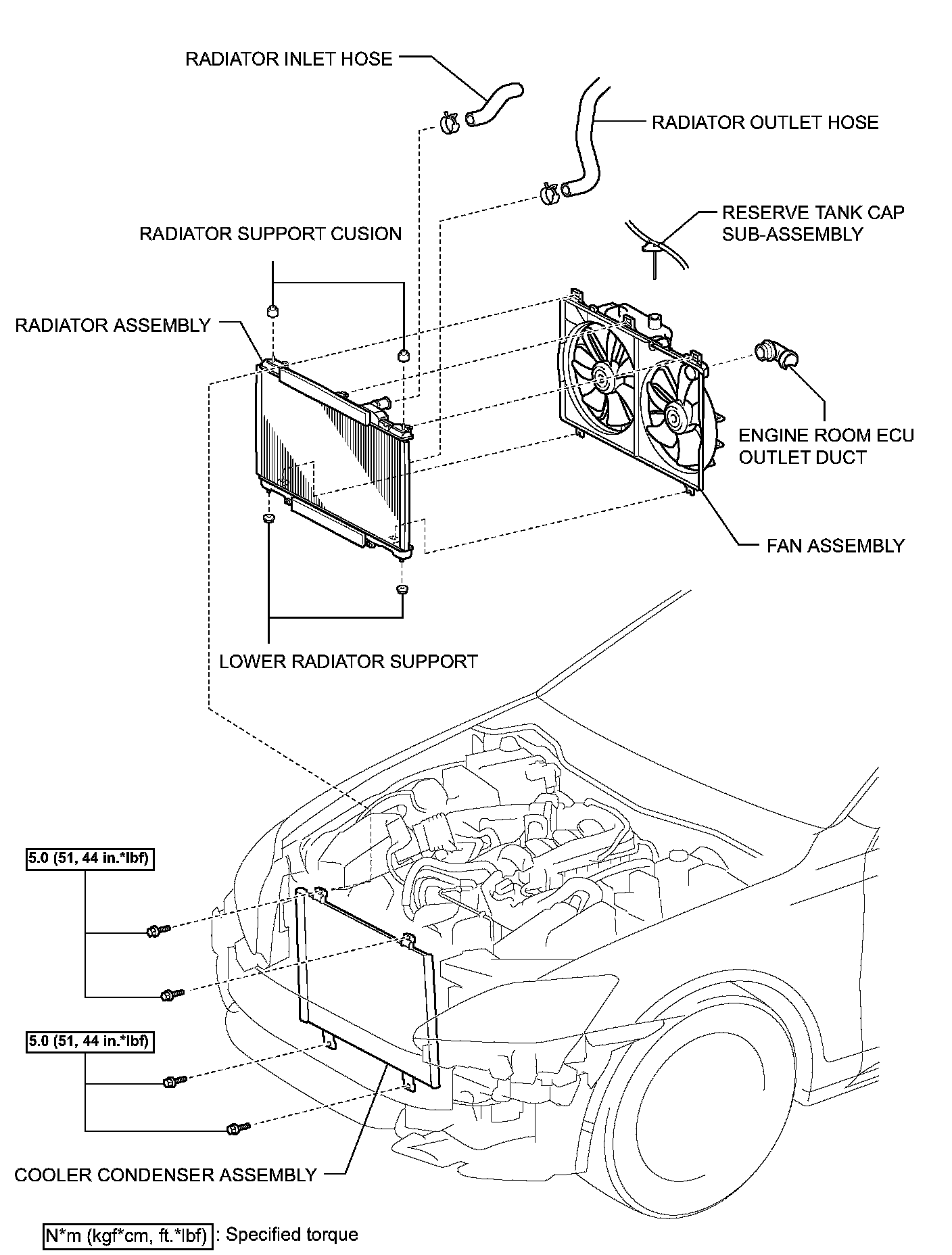 a. Check that the radiator and condenser are not blocked with leaves, dirt, or insects. Clean the hose connections.