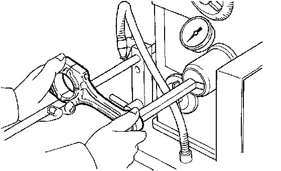 c. Using a pin hole grinder, hone the bush to obtain the specified clearance between the bush and piston pin.