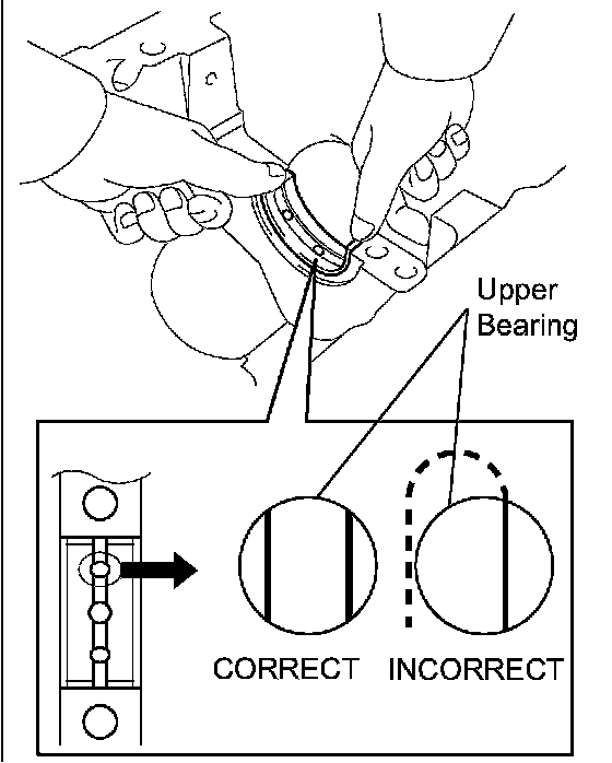1. Install the upper bearings to the cylinder block as shown in the illustration.