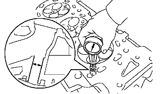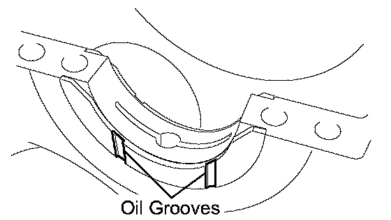 ^ Both sides of the oil groove in the cylinder block should be visible through the oil feed holes in the bearing. The amount visible on each side of the holes should be equal.
