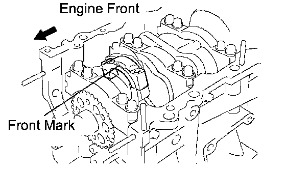 1. Mark the front of the bearing cap bolts with paint.