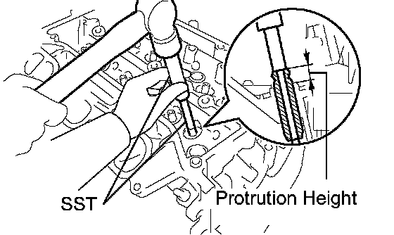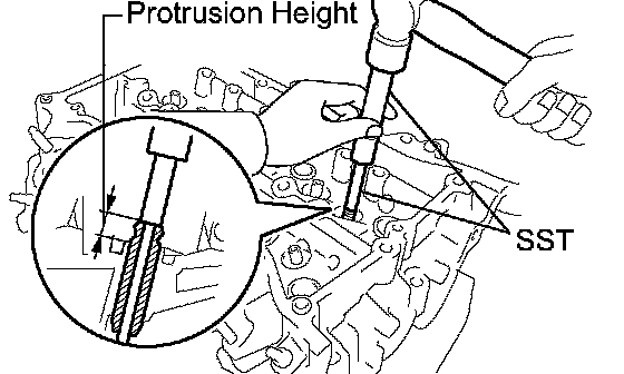d. Using SST, tap in new valve guide bushes to the specified protrusion height.