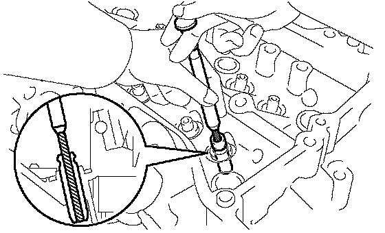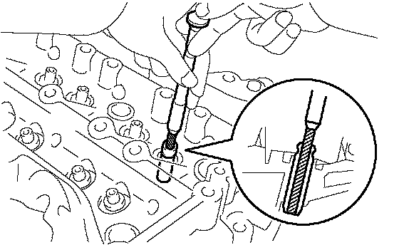 b. Using SST, install the union to the cylinder head as shown in the illustration.