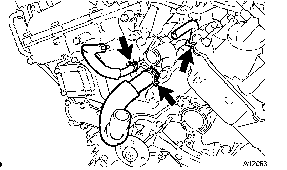 b. Install the water by-pass joint with the 2 bolts and 4 nuts.
