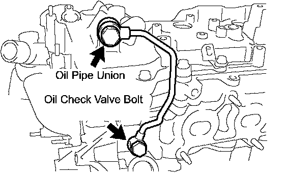 c. Install a new gasket and temporarily install the oil pipe (on the cylinder head side) with the oil check valve bolt.