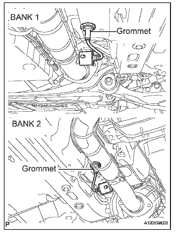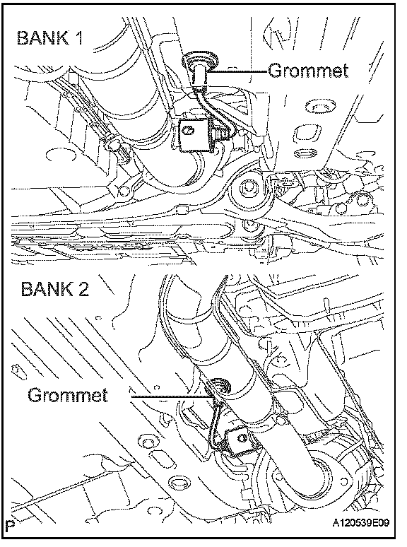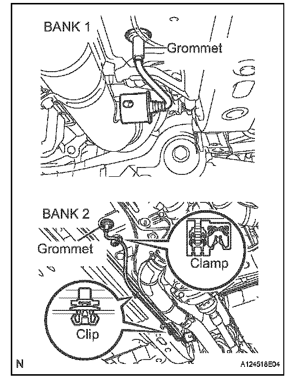 (a) Remove the grommets of the heated oxygen sensors (BANK 1, BANK 2) and 2 clips.