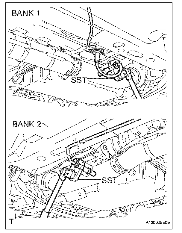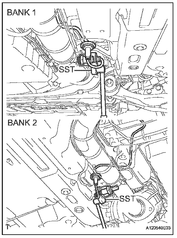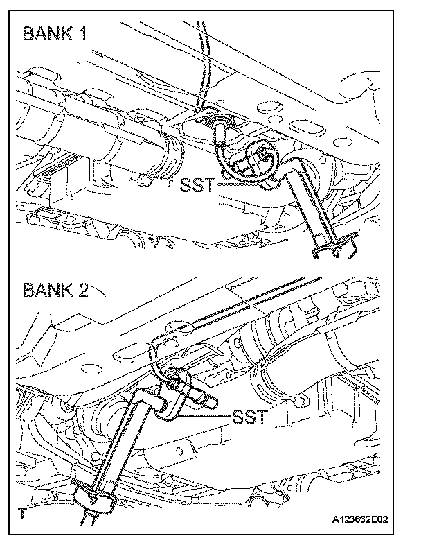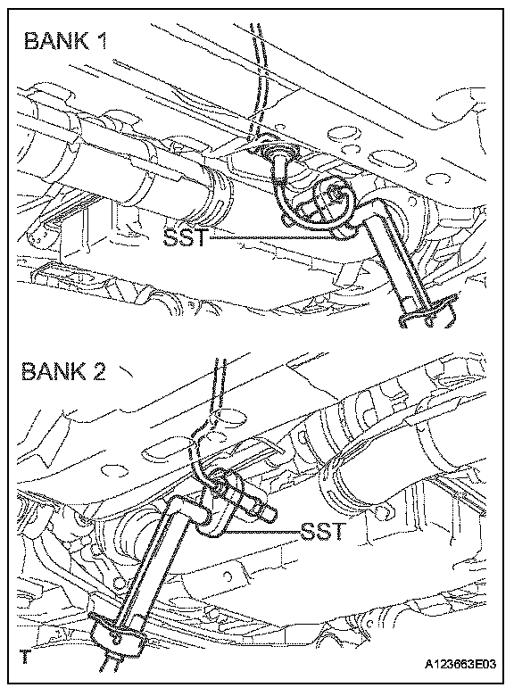 (b) Using the SST remove a oxygen sensors (BANK 1, BANK 2).