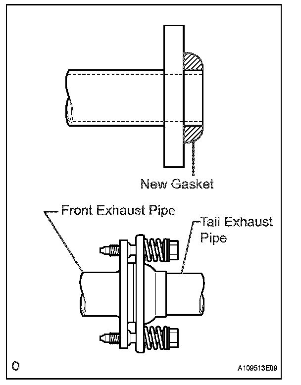 (b) Install a new gasket to the rear end of the front exhaust pipe.